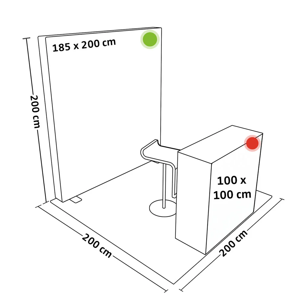 De PIXLIP S-15 beursstand is een compacte 2×2 meter beursopstelling (4 m²) met geïntegreerde LED-verlichting. Deze set is ideaal voor kleinere beursvloeren, infopunten en promotionele toepassingen waar je professioneel zichtbaar wilt zijn met minimale ruimte.